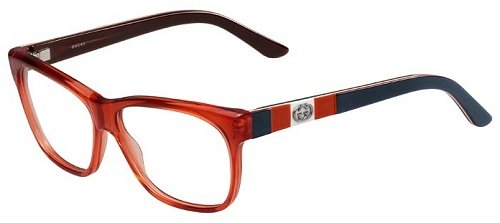 Gucci Women's 3543 Plastic Eyeglasses : Orange / Grey / Red plastic frame, light rectangular shaped. Product comes with an original Gucci carrying case, cleaning cloth and manufacturer's booklet.