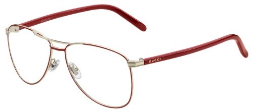 Gucci Women's 4218 Metal Eyeglasses : Burgundy / Gold metal frame, aviator shaped. Product comes with an original Gucci carrying case, cleaning cloth and manufacturer's booklet.