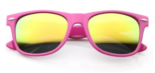 Lunettes de Soleil Style Wayfarer Retro Vintage 80's Verres Effet Miroir Violet - Collection Homme & Femme Monture Rose - Verres Effet Miroir Essence